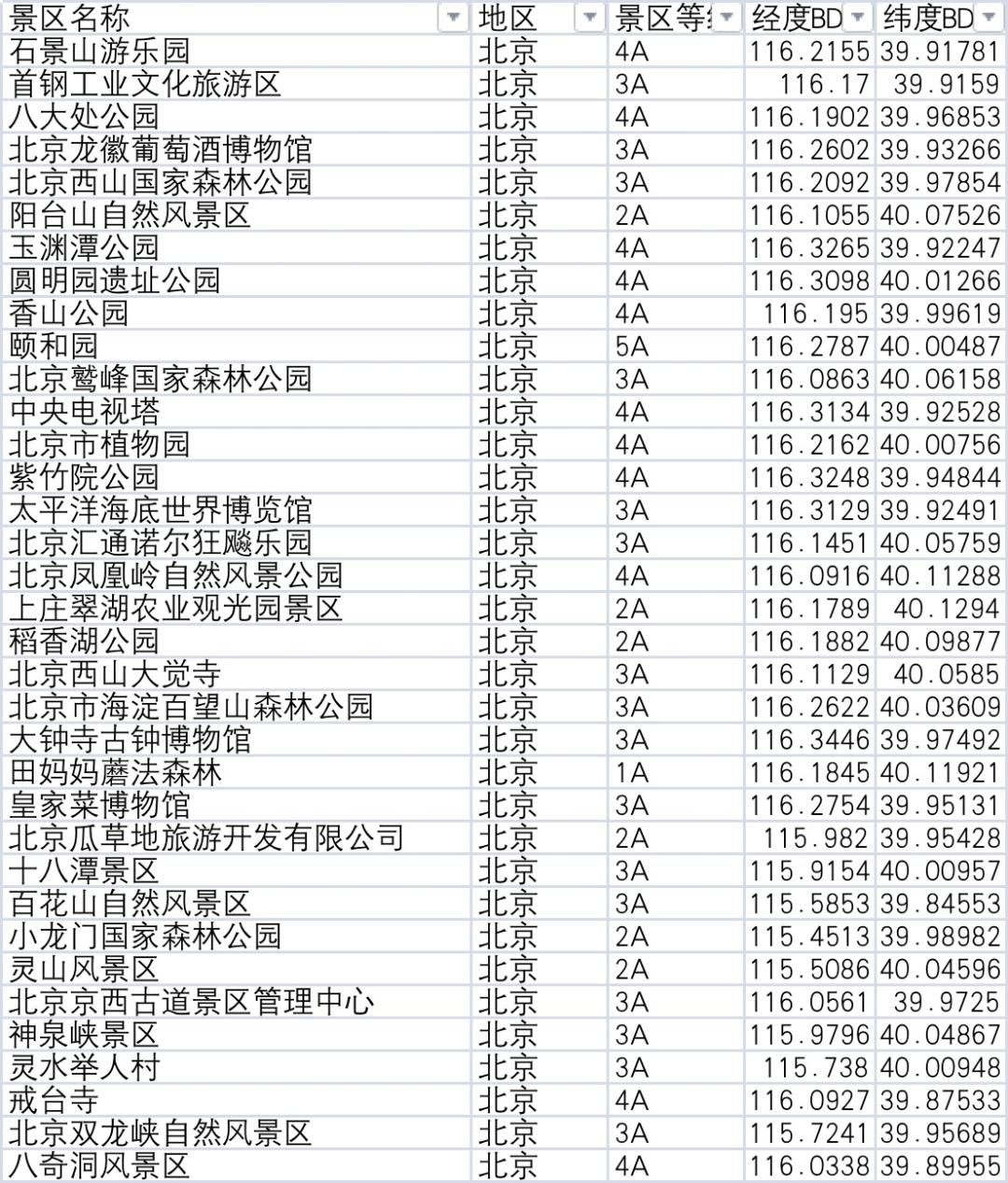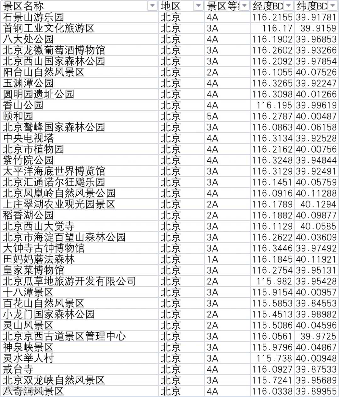 皮皮侠对之前280个景区的数据进行了更新,增添了这22个景区的经纬度地址,并形成了新的shp文件。