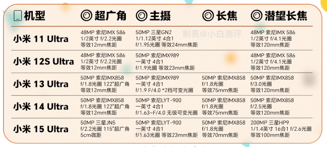 作为参考,回顾下近五代小米Ultra的影像规格,可以看到早期小米11 Ultra和小米12S Ultra都是后置三摄方案,不知道小米16 Ultra定版是否会重回三摄?🤔这里也问问大家,你最理想的超大杯影像旗舰是哪种镜头组合?