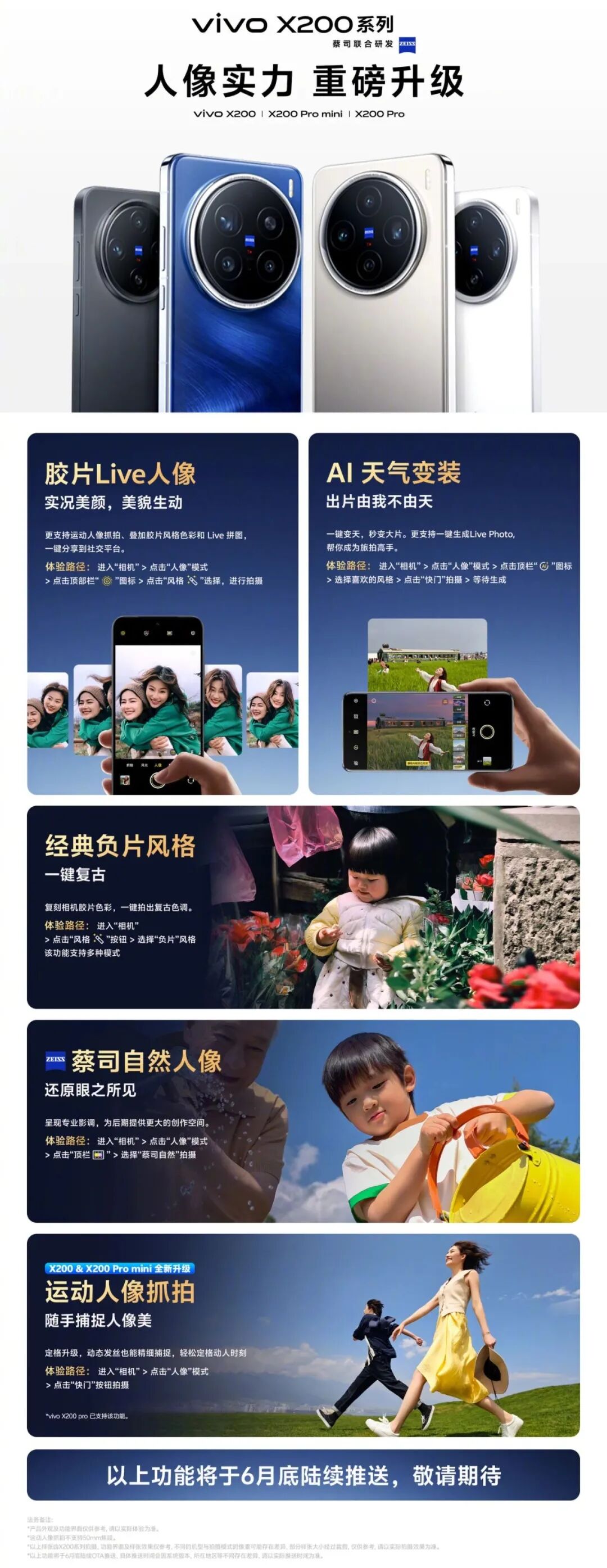 【OTA】vivoX200/Pro/mini宣布人像全新升级 6月底陆续推送