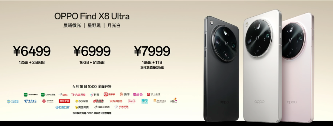 Find X8 Ultra:12+256GB版售价6499元,16+512GB版售价6999元,16GB+1TB卫星通信版本7999元