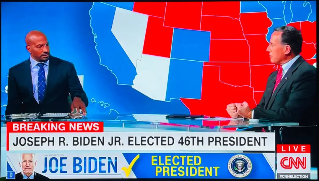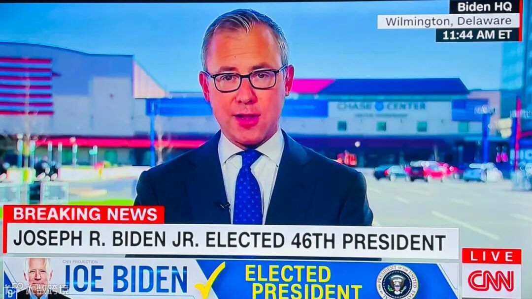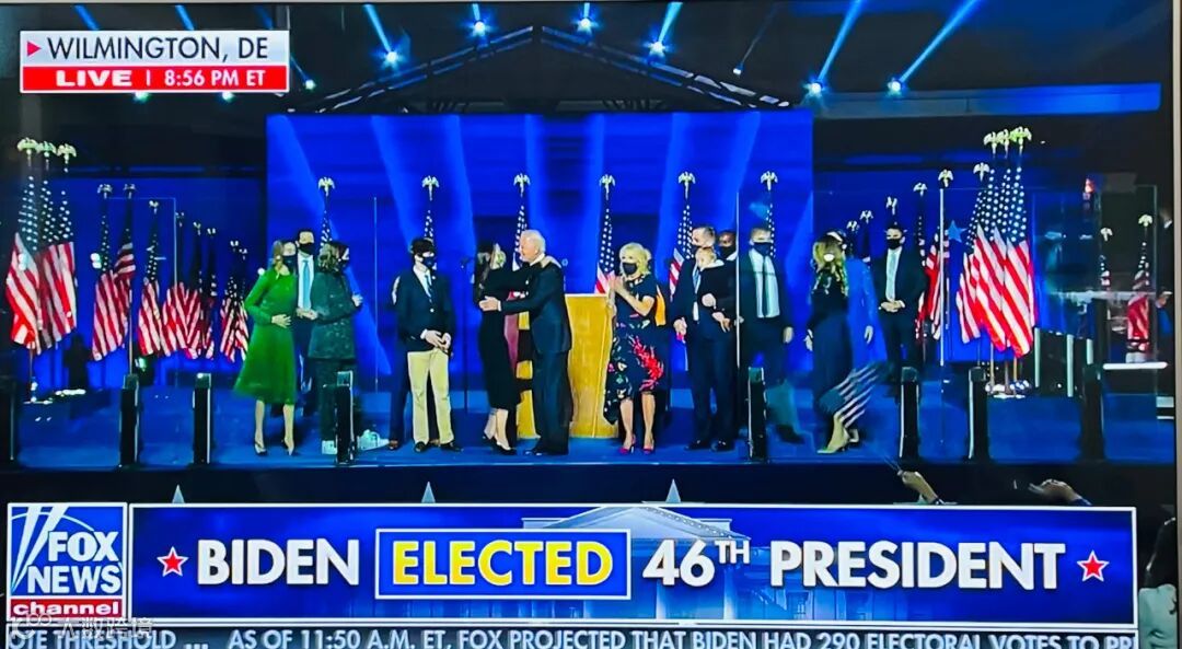 北京时间2020年11月8日9时许,拜登和哈里斯在特拉华州威尔明顿向全国发表讲话。据CNN报道,哈里斯以当选副总统身份首先发表胜选演说,随后拜登以当选总统身份登场发表讲话。
