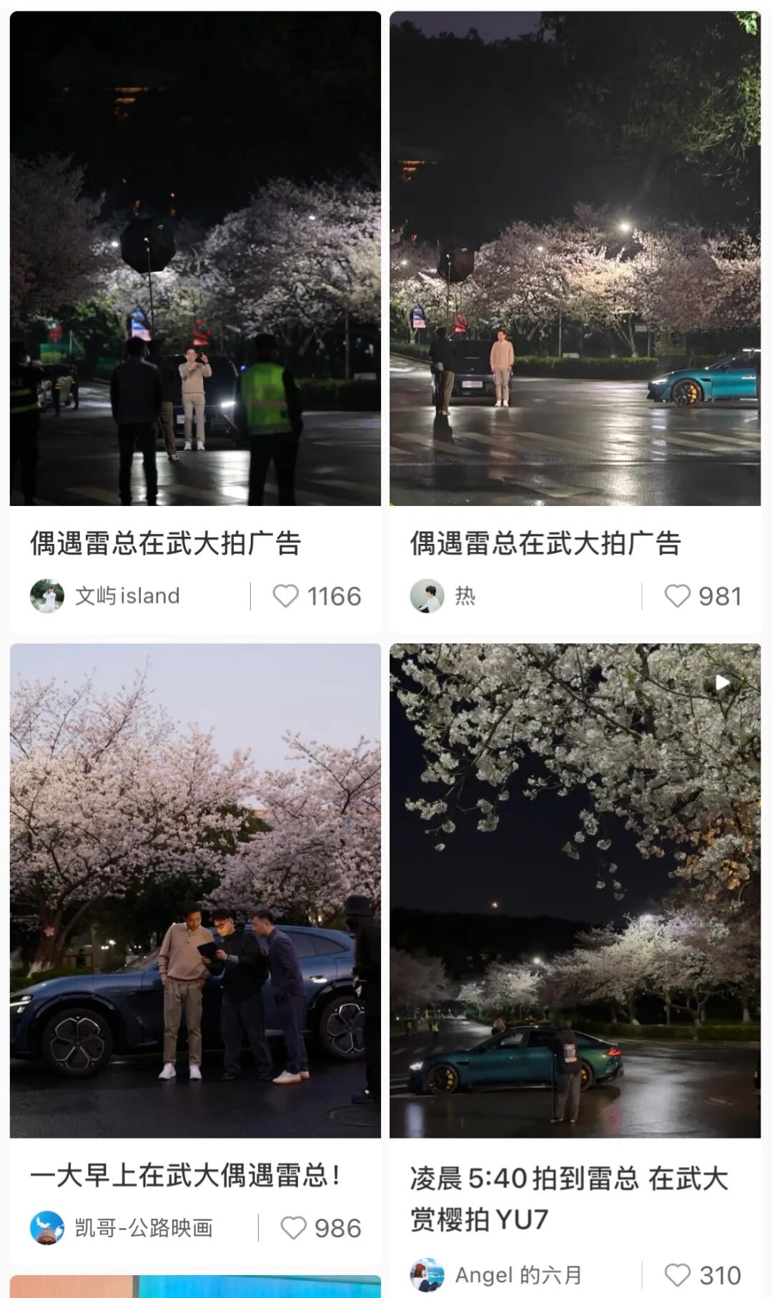 【品牌】雷军现身武汉大学 清晨拍摄小米YU7