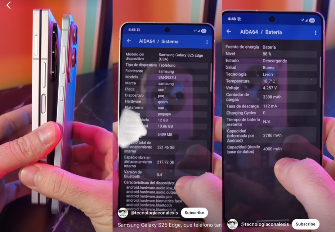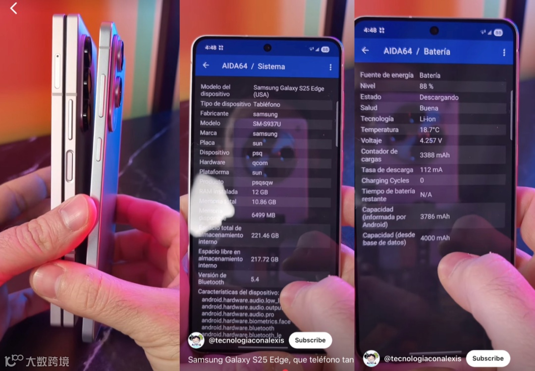 附上之前网上曝光的上手视频画面,预计三星S25 Edge还将配备25W充电,有在等这款新机的吗?