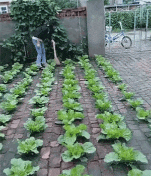 哈尔滨李女士独特的种菜技术就让我不得不服,别人种菜都种在土里,李女士剑走偏锋,偏要另辟蹊径,直接种在砖缝中!