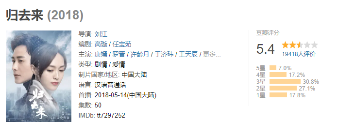而在唐嫣和罗晋的打着精准展现留学生活的《归去来》中,没有什么学习,没有什么规划逗号,留学生活基本只剩下爱情。