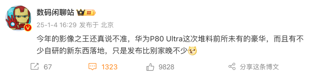 如上图所见,爆料达人数码闲聊站称华为Pura 80 Ultra这次堆料前所未有的豪华,而且有不少自研的新东西,只是发布比别家晚。