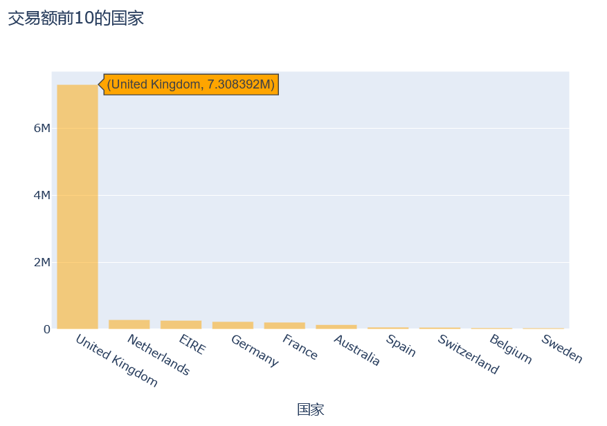 layout=go.Layout(title='交易额前10的国家',xaxis=dict(title='国家'))