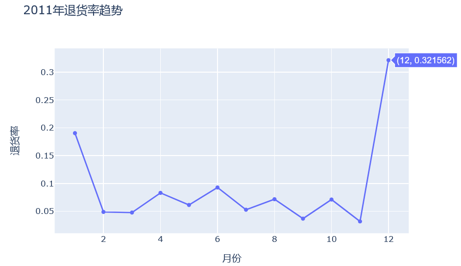 layout=go.Layout(title="2011年退货率趋势", xaxis_title="月份", yaxis_title="退货率")