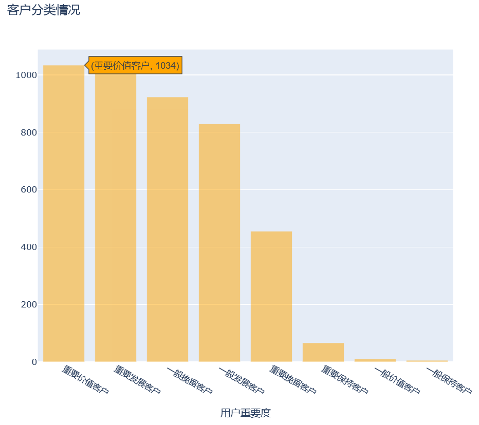 layout=go.Layout(title='客户分类情况',xaxis=dict(title='用户重要度'))