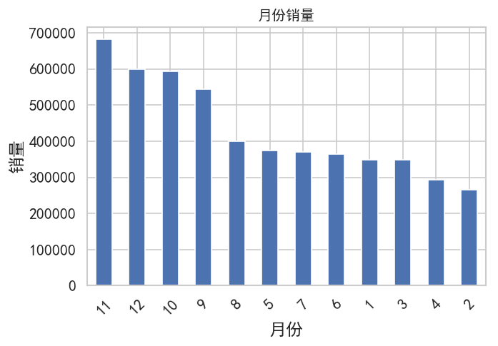 销量最高的是11月份,其次是12月份,大部分销量较佳的月份集中在下半年,这是因为该产品是礼品,在下半年节日较多,加上促销优惠,所以销量比上半年月份多。