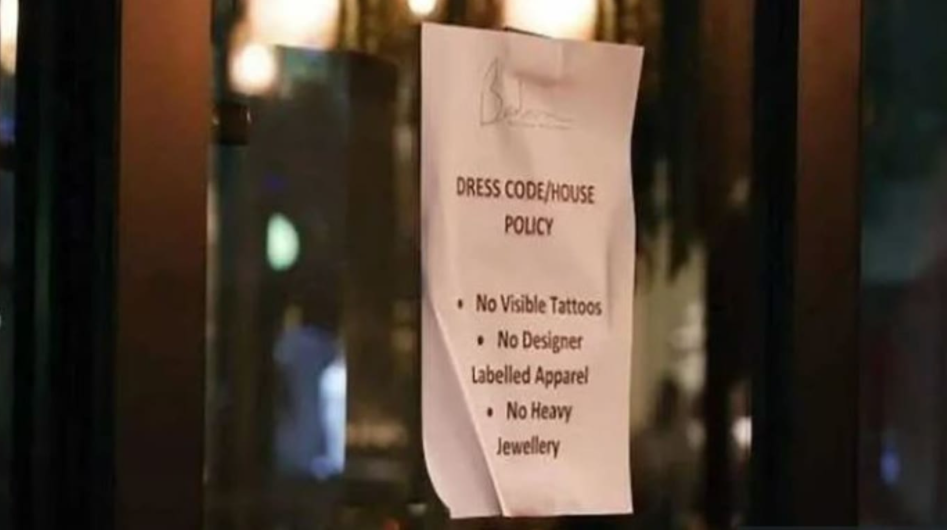 位于悉尼高档区Double Bay的一家广受名人欢迎的Bedouin餐厅近日在店外贴上一张通知,列明场所的着装要求,其中包括禁止佩戴大件且厚重首饰的人士进入餐厅。以免顾客被冒犯。餐厅员工也必须遵守这项新规定。这家餐厅于三年前开业一直广受欢迎,许多名人都曾到访。悉尼的酒吧和餐馆一般都设有着装要求,但大多数的场所规定不会包含纹身或首饰。