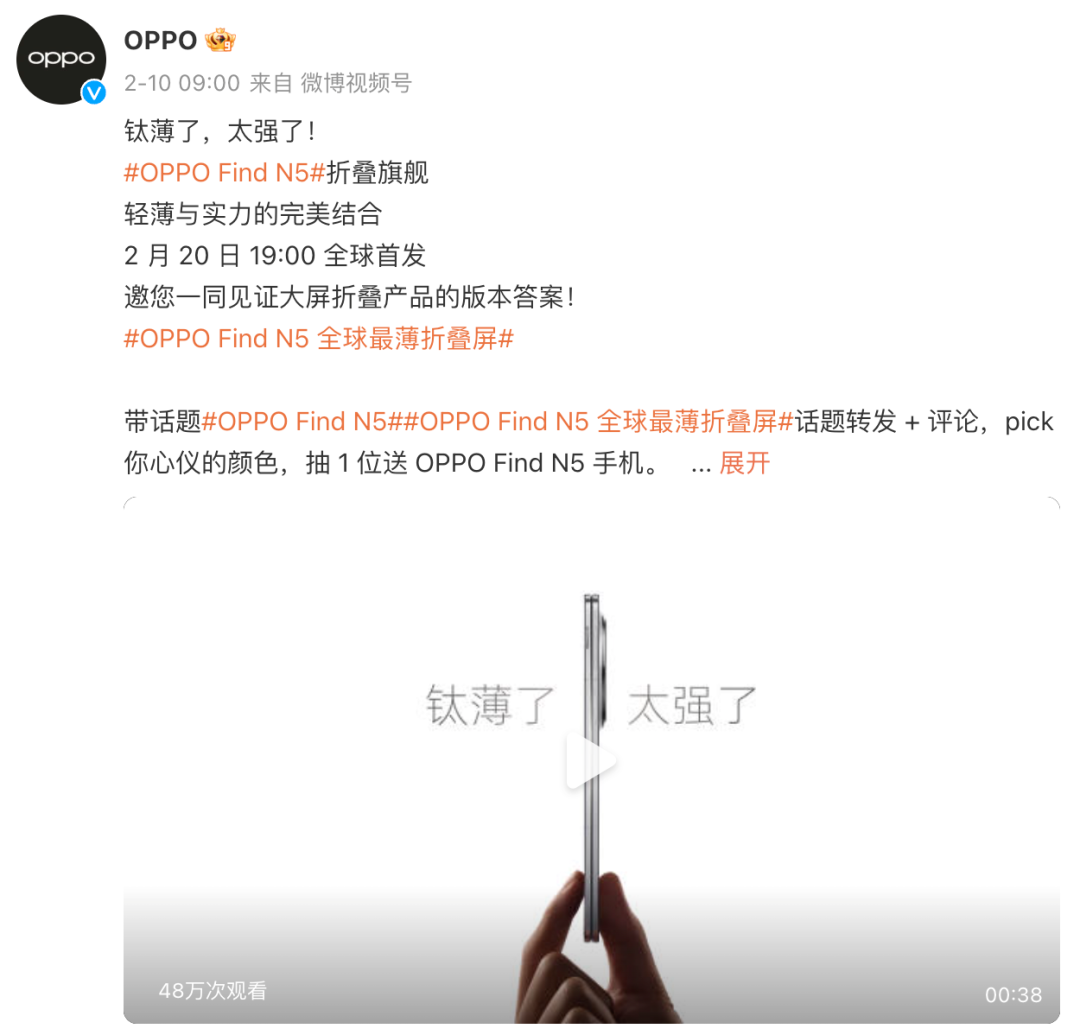 OPPO新款折叠屏Find N5和OPPO Watch X2则将于2月20日19点发布,目前配置已经曝光的差不多了,昨日刚汇总,这里就不再重复,可戳👉🏻蓝字跳转回顾,大家最关注哪家的新品?