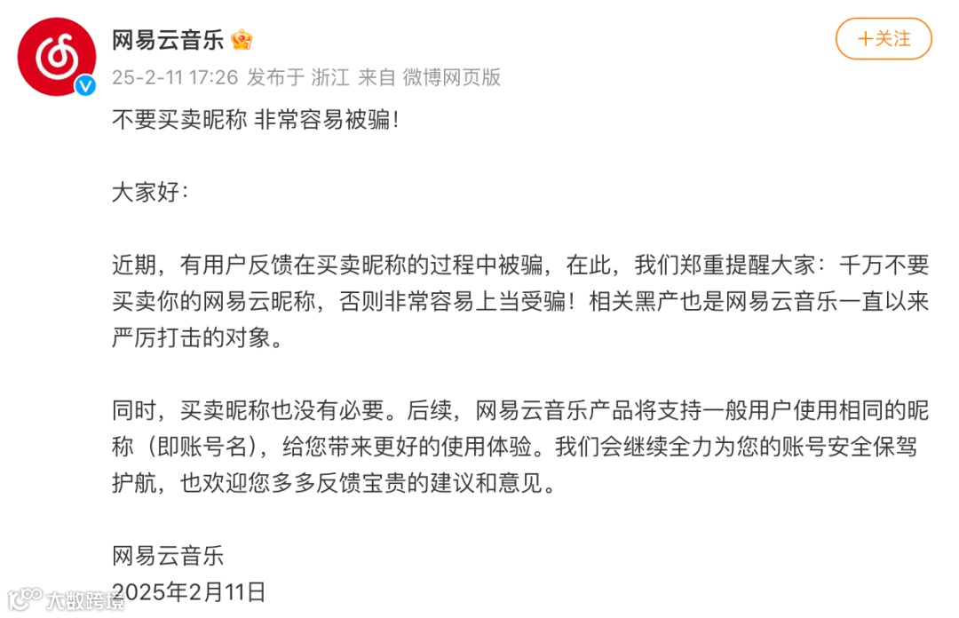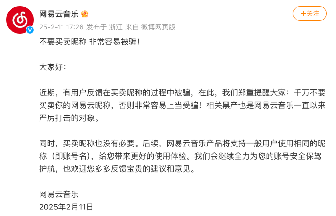 如上图所见,昨天傍晚网易云音乐宣布「后续网易云音乐产品将支持一般用户使用相同的昵称(即账号名)」。问问大家,会比较在意自己的ID是否独一份吗?