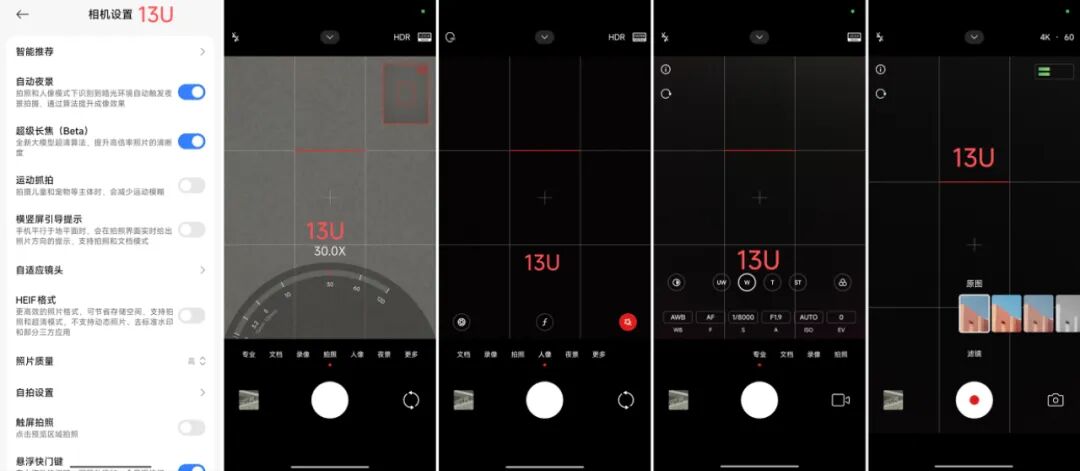 5、12SU、13U缺失“大师开拍”、专业模式录像缺失大师LUTs……