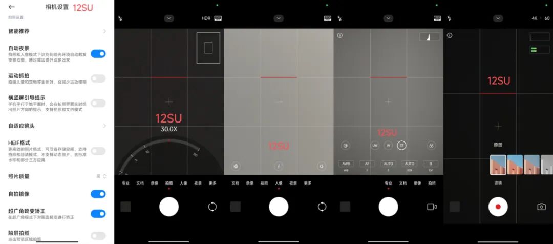 通过前面几张图的分析,我们能发现小米相机的一个“问题”,那就是新算法、新功能只会在新机里,不给老机型下放(比如15系列的功能也没下放到14U)。为了给大家更直观地展示三代Ultra的相机软件功能变化,给大家截了一组功能对比图,来简单看下不同(拿12SUltra、13Ultra和目前最新的14Ultra的对比):