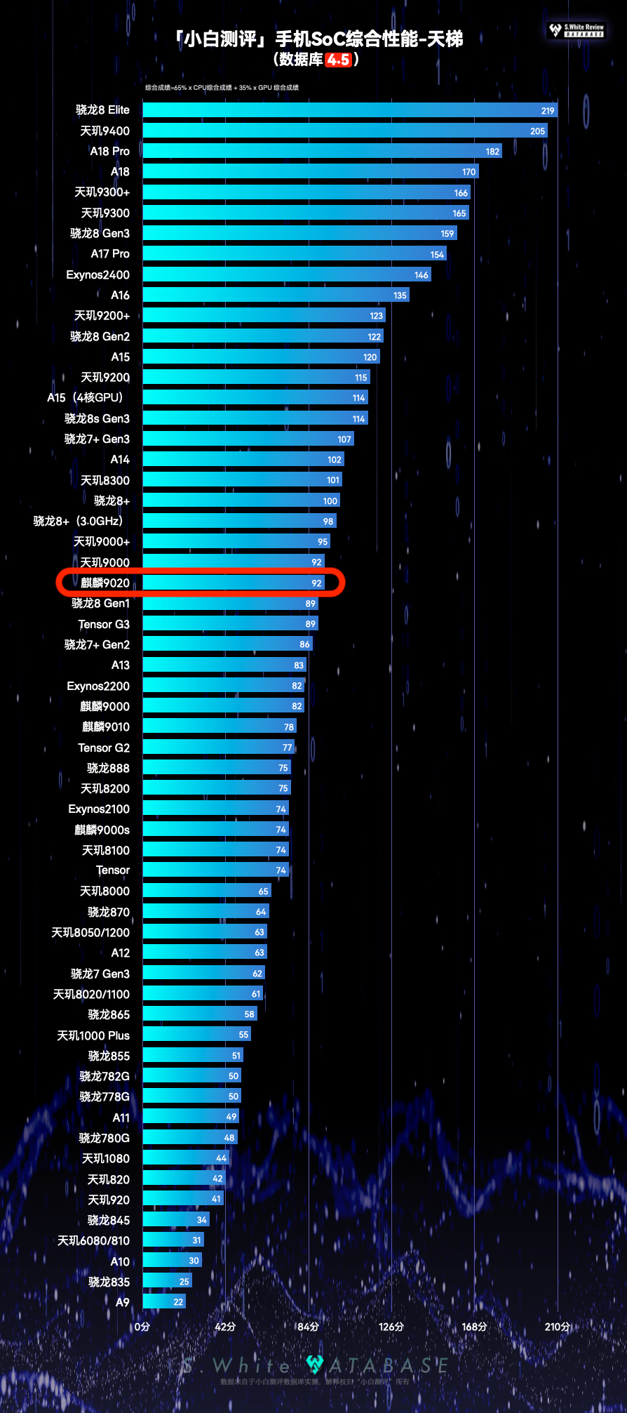 华为 Mate70 Pro系列搭载最新的麒麟9020,实际性能表现怎么样?小白测评关于这颗新处理器的前期性能测试结果以及芯片微架构整理如下(另外本次数据库更新了处理器性能天梯图,大家可以到👉🏻小白测评数据库快速查看。
