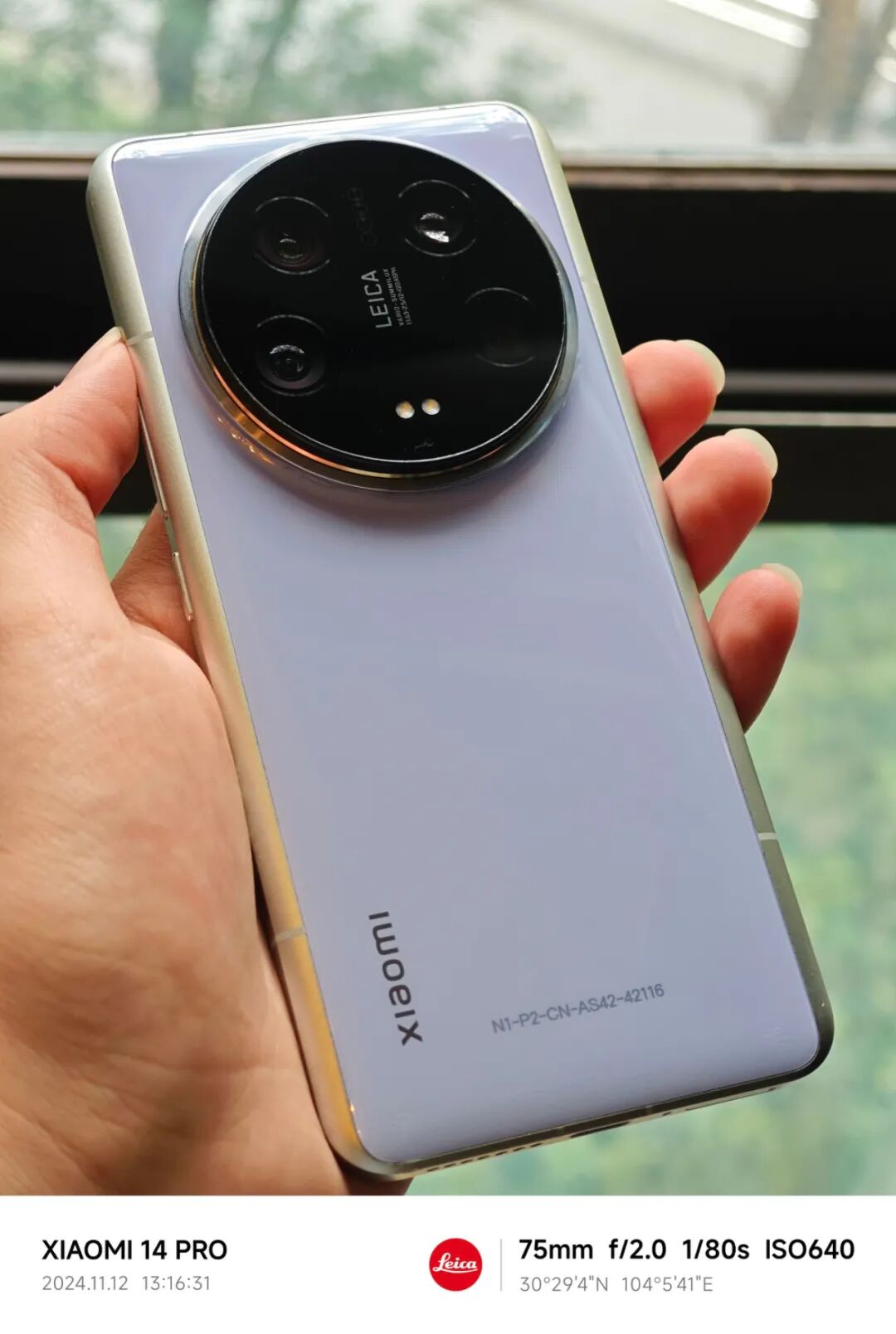 如上图所见,有网友曝光了一个小米14 Ultra淡紫色版本,看起来是亮面后盖,不太确定是玻璃材质还是龙晶陶瓷。