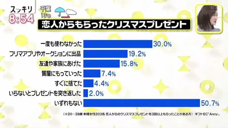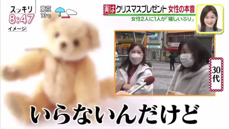 但最近日本一电视台制作了关于圣诞礼物的专题节目,根据调查: