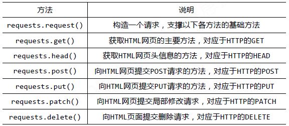 requests库的基础方法如下: