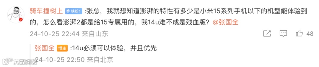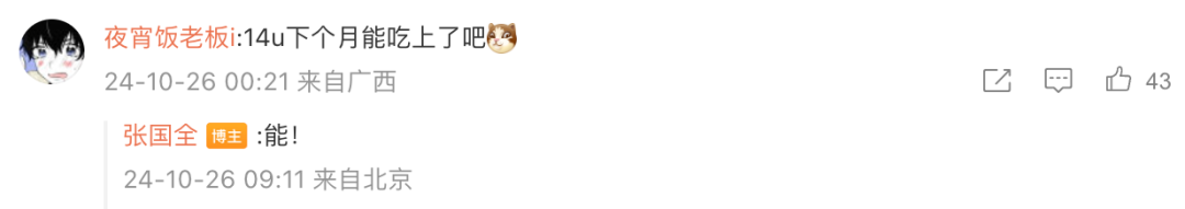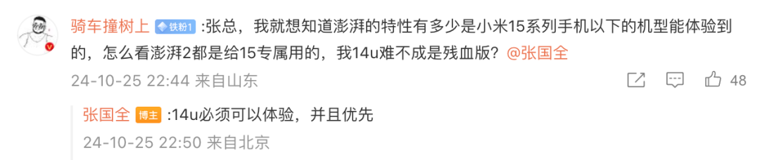 如上图所见,小米手机 系统软件部总监张国全称小米14 Ultra必须可以体验、并且优先,预计下个月能吃上,小米14 Pro也很快。