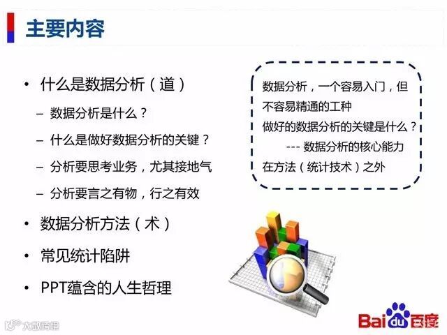 这是一份来自百度内部的数据分析学习PPT,非常经典的入门教材。