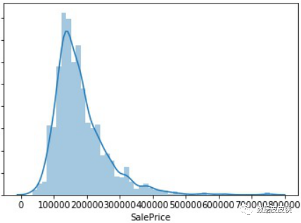 使用seaborn库中的distplot方法将数据中房价的分布显示出,如下: