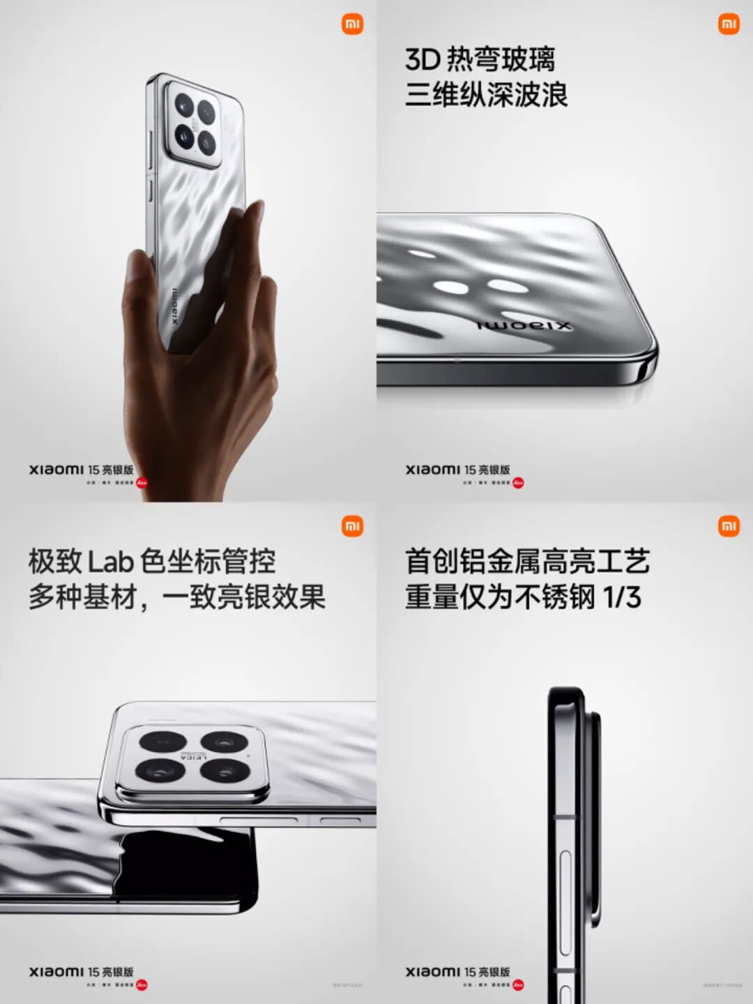具体「小米15亮银版」采用3D热弯玻璃,铝金属高亮工艺,Lab色坐标管控多种基材打造一致的亮银效果,12+256GB版本售价4699元,12+512GB版本售价4999元,16+512GB版本售价5199元,16GB+1TB版本5699元,目前已经开启预售,将于10月31日10点正式开售。