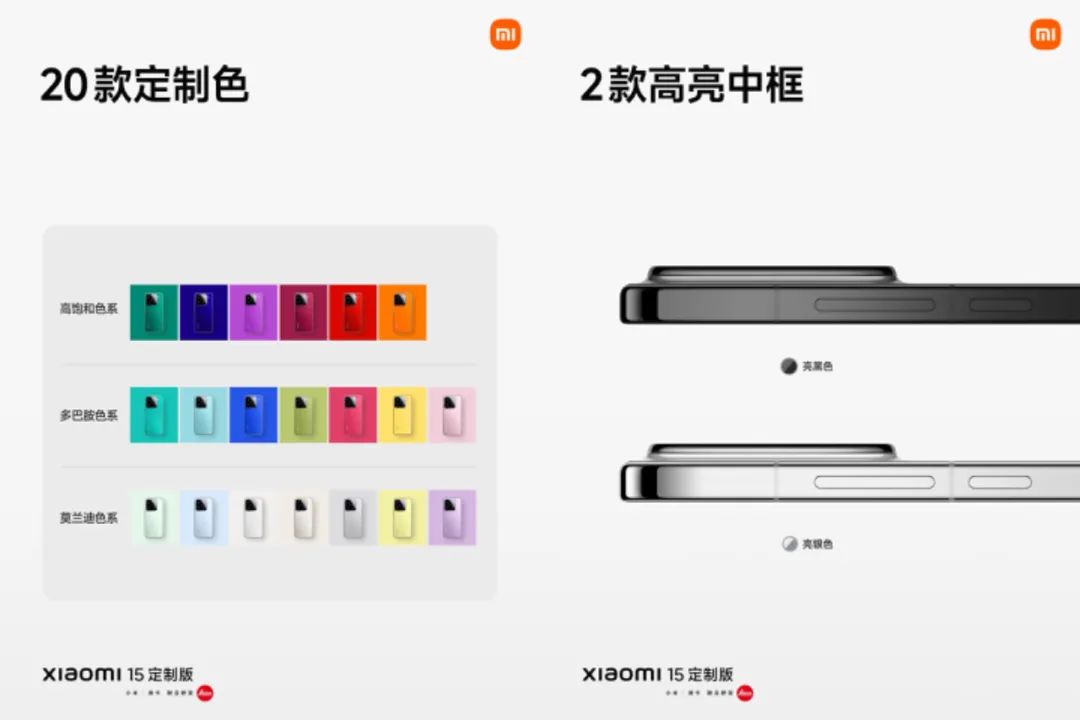 「小米15定制版」则提供20种颜色、2种高亮中框(亮银色or亮黑色),组合下来一共有40种搭配,不加价,16+512GB版售价4999元,同样是官网限定。这波大家打算入手吗?选哪个版本?