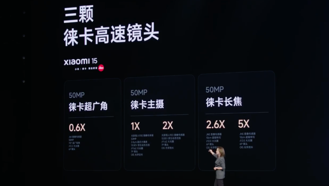 核心配置上,小米15首发搭载骁龙8至尊版,LPDDR5X、UFS4.0,配备5400mAh金沙江电池,小米澎湃P3智能快充芯片、澎湃G1电池管理芯片,90W有线充、50W无线充,配备立体双扬、X轴马达、小米澎湃T1S通信芯片,支持红外遥控、NFC、双频GPS、IP68,USB 3.2 Gen1 5Gbps,首发预装澎湃OS 2等。