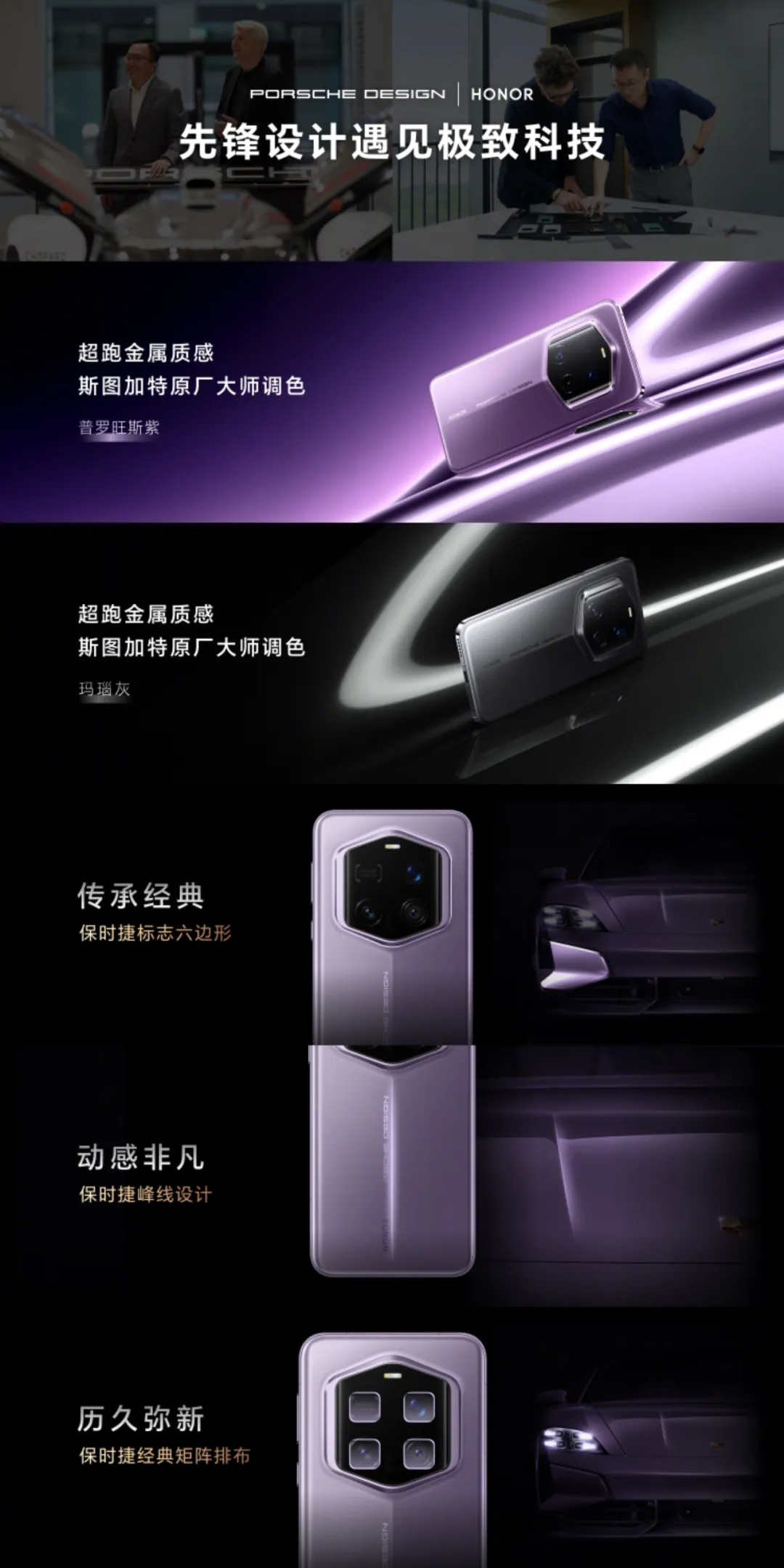 外观设计上,荣耀Magic7 RSR保时捷设计将提供普罗旺斯紫和玛瑙灰2个配色,整体机身依然有非常丰富且极具标志性的保时捷元素。
