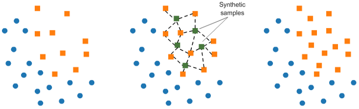 from imblearn.over_sampling import SMOTEsmote = SMOTE(ratio= minority )X_sm, y_sm = smote.fit_sample(X, y)