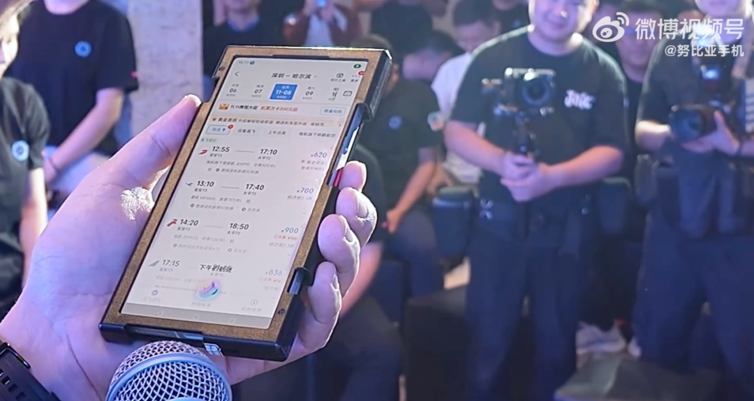 如上图所见,努比亚官方账号更新的12周年庆典暨星云AIOS沟通会现场快闪视频中出现了套着保密壳的Z70 Ultra真机。