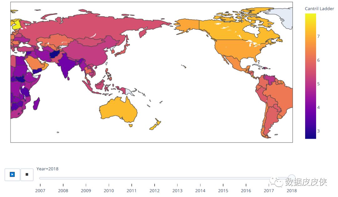 本文将探讨三种用Python可视化数据的不同方法。以可视化《2019年世界幸福报告》的数据为例,本文用Gapminder和Wikipedia的信息丰富了《世界幸福报告》数据,以探索新的数据关系和可视化方法,《世界幸福报告》试图回答世界范围内影响幸福的因素。报告根据对“坎特里尔阶梯问题”的回答来确定幸福指数,被调查者需对自己的生活状况进行打分,10分为最佳状态,0分为最差。本文将使用Cantril Ladder作为目标变量。Cantril Ladder就是指幸福指数。