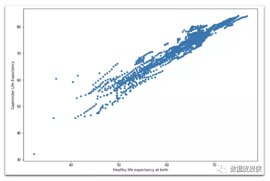 由图5可以得知,预期寿命与Gap minder的预期寿命之间有高度的相关性。
