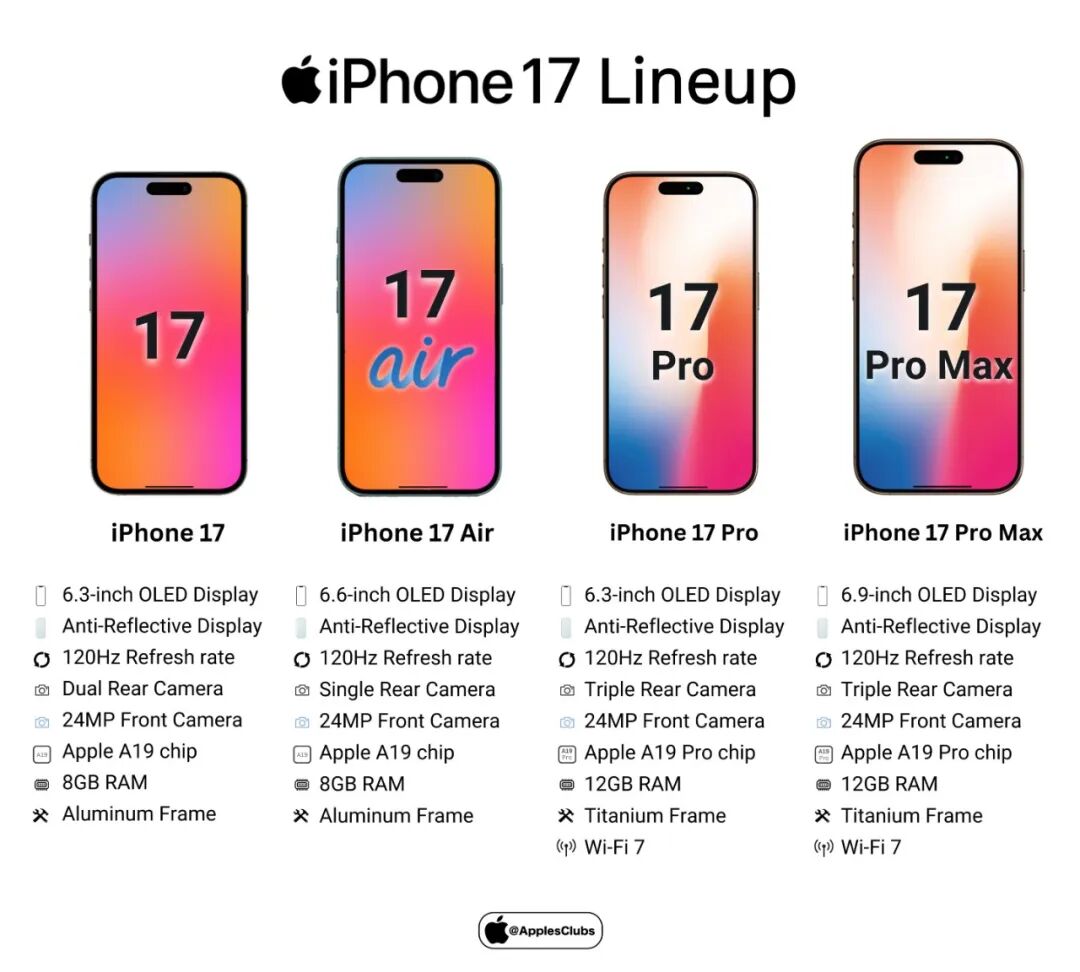 上图为iPhone 17 Air效果图 非官方 仅供参考
