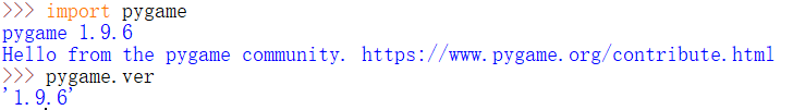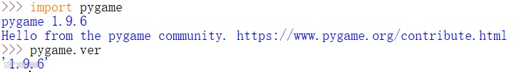 下载完成后怎么检验下载是否成功,怎么查看下载的版本呢?在你的python里打入如下代码,如果和下图显示内容一致,则说明安装成功,就可以开始愉快的打飞机游戏编写了。