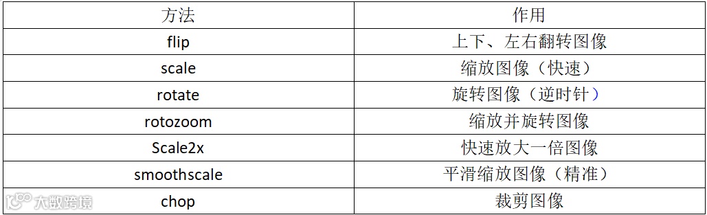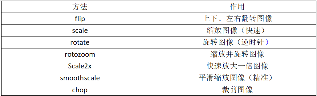 其中,pygame.transform用于实现对象(surface)的变换
