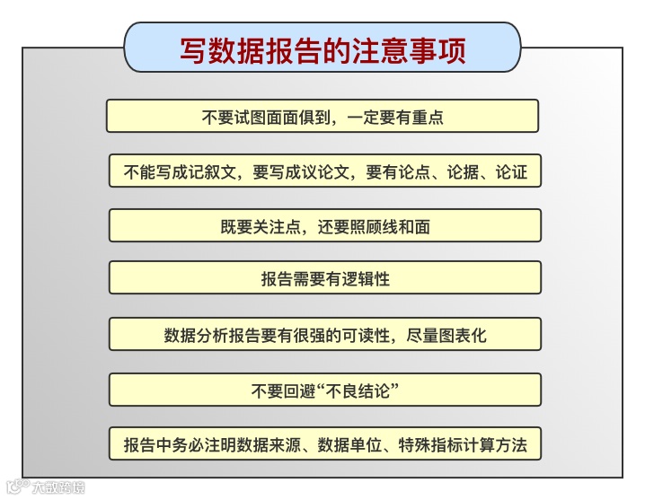 第七,好的分析报告一定要有逻辑性,通常要遵照: