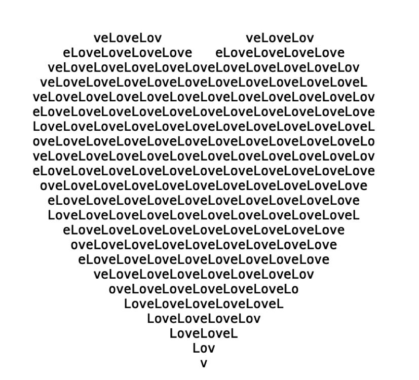 print('\n'.join([''.join([('Love'[(x-y) % len('Love')] if ((x*0.05)**2+(y*0.1)**2-1)**3-(x*0.05)**2*(y*0.1)**3 <= 0 else ' ') for x in range(-30, 30)]) for y in range(30, -30, -1)]))