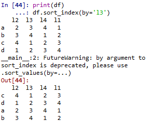 当对DataFrame进行排序时,需要规定一个比较的参数,且语法都为.sort_index,范例如下:
