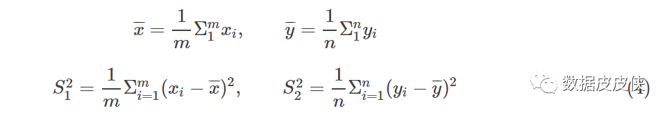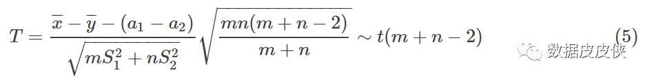假设两个总体X, Y, X∼N(a1,σ2),Y∼N(a2,σ2)X∼N(a1,σ2),Y∼N(a2,σ2)。因为本例子中两种作物总体的方差是相同的,所以统一使用δ表示。m, n分别是X, Y的样本数。