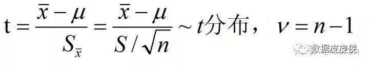 英国统计学家W. S. Gosset于1908年以笔名“Student”发表论文,证明t分布服从自由度v=n-1的t分布,即