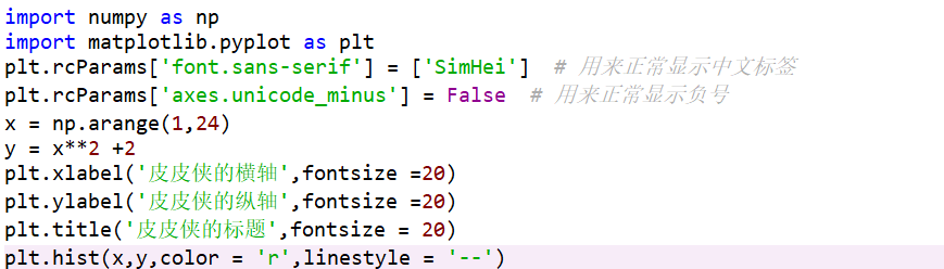 由于Matplotlib并不是预置的支持中文和负号显示,所以如果想要用中文和负号作为表中的标题,请一定加上上文中两段有注释的代码。