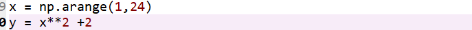 我们采用Numpy包中的arange()函数来创建一个array类型的数组,并定义一个函数y。