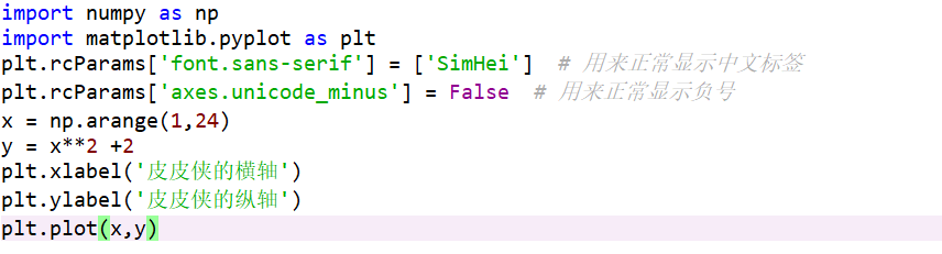 首先,我们来为这个图填上横坐标轴以及纵坐标的标签。我们可以通过函数xlabel()以及ylabel(),来为我们的图填上横轴以及纵轴标签,示例代码如下: