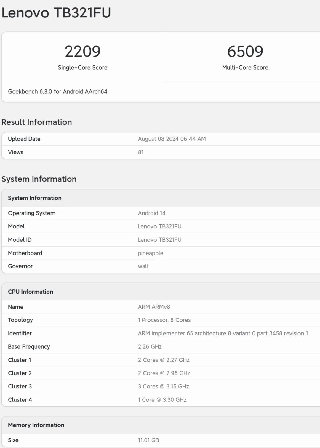 配置方面,联想Y700 2024款应该就是前不久跑分曝光的那台TB321FU,搭载骁龙8 Gen3处理器,提供12GB内存,预装ZUI 16.1。