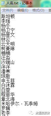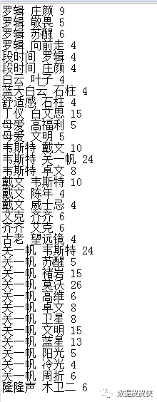 对于这种分析需要我提前准备好人物名单,于是在豆瓣上整合了三部曲中热心网友一个一个数出来的出场人物做成‘人名.txt’,部分如下