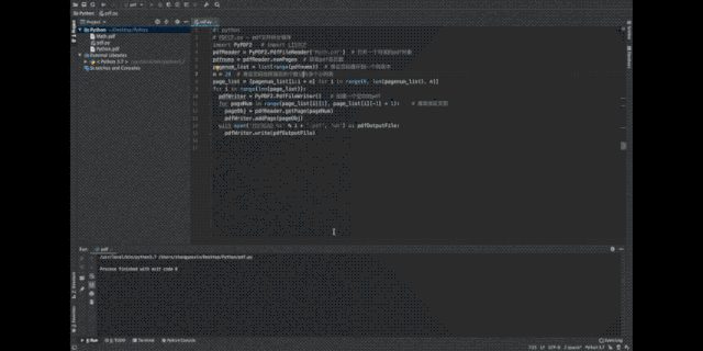 这是一段合并两个PDF文档的代码,通过和上段代码进行对比,我们可以发现其大体思路是相反的,但也较为简单。