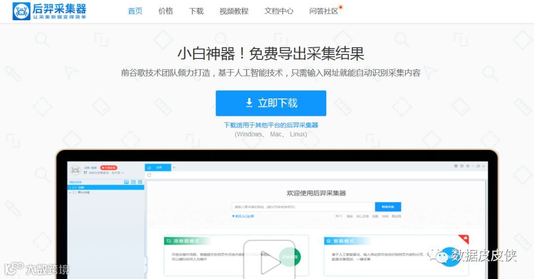这两款采集器是作者认为市面上相对最好用的两款采集软件。后羿采集器是由前谷歌搜索技术团队基于人工智能技术研发的新一代网页采集软件,该软件功能强大,操作简单,可谓是居家旅行随身神器。八爪鱼大数据采集平台是深圳视界信息技术有限公司自主研发,整合了网页数据采集、移动互联网数据及API接口服务(包括数据爬虫、数据优化、数据挖掘、数据存储、数据备份)等服务为一体的数据服务平台,连续4年蝉联互联网数据采集软件榜单第一名。两款软件的采集模式基本相同,主要有两种:智能模式采集或简易采集、自定义模式采集。本期主要介绍智能模式采集或简易采集。