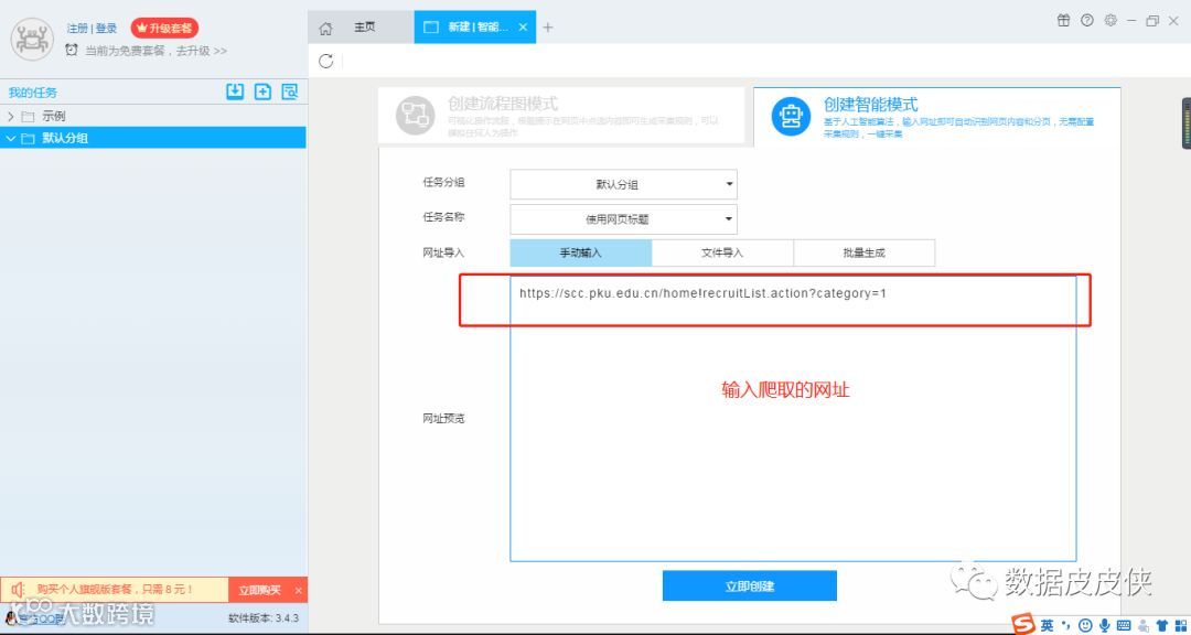 3.点击下方立即创建后,可以看到软件自动识别需要爬取的内容